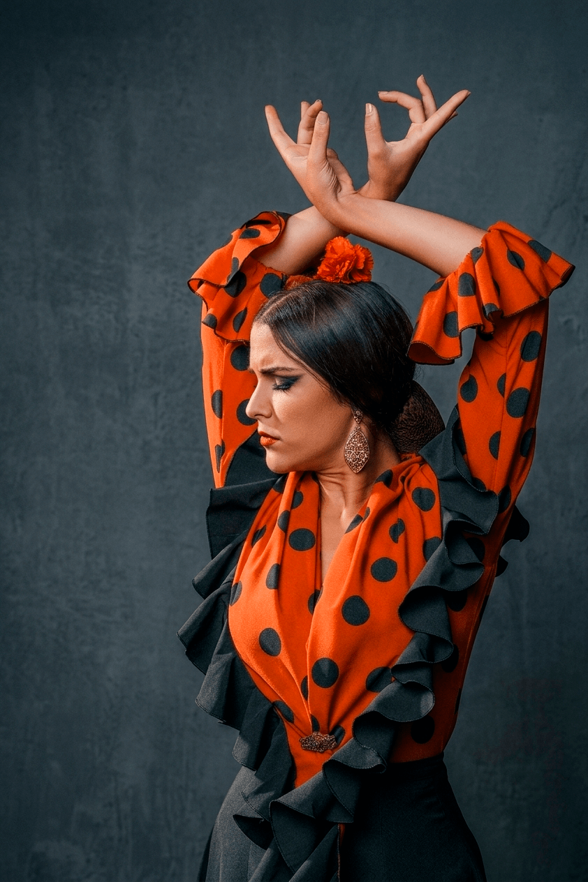 Ven con ropa cómoda. Para Flamenco, recomendamos zapato con tacón ancho (si no tienes, puedes empezar con calzado cerrado). Para Sevillanas, cualquier zapato cómodo te servirá al principio.